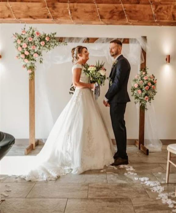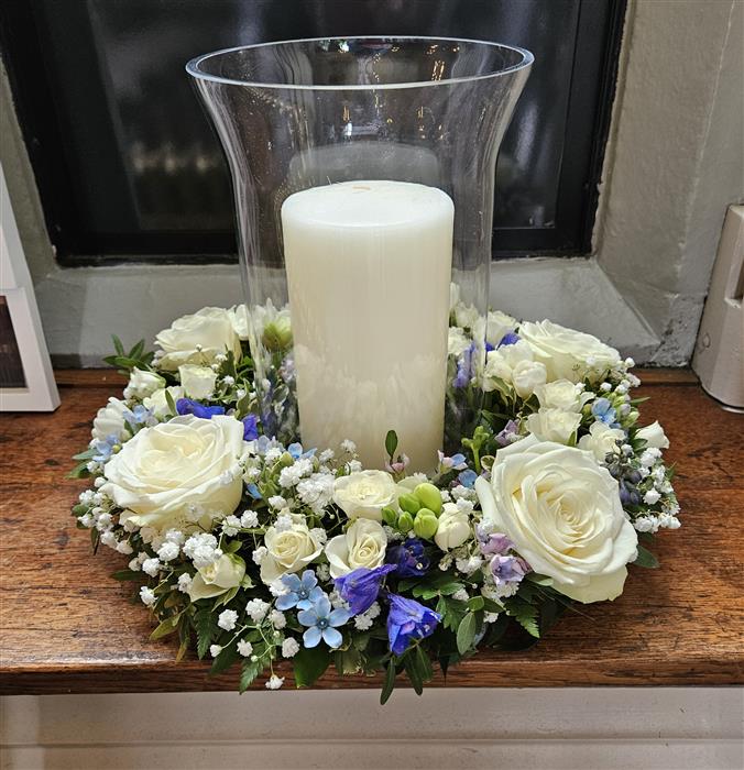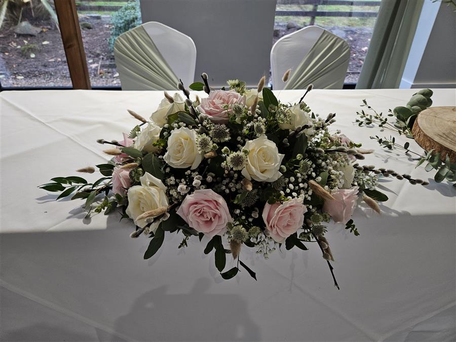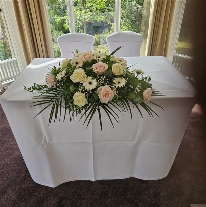 Registrar or altar arrangement Low, wide and photo friendly, designed to sit neatly in front of you without blocking faces.