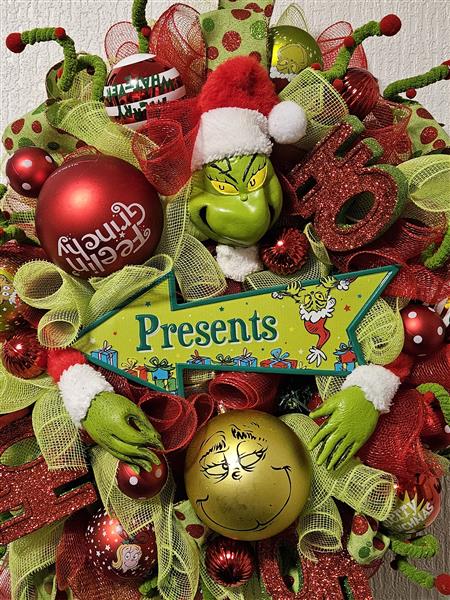 Bespoke Artificial Grinch inspired Wreath zoom 2Bespoke Artificial Grinch inspired Wreath zoom 3
