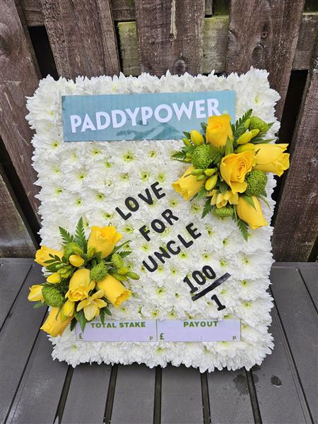 A fitting Tribute for anyone who liked to place a bet on the horses or any other sport. Wording can be changed to your requirements.