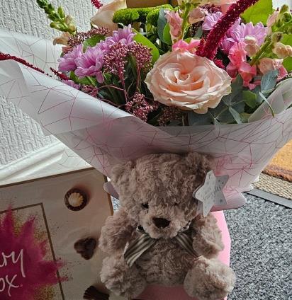 Flower, Chocolate & Teddy Gift Set zoom 2