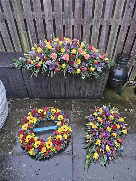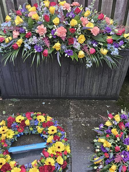 4ft vibrant multicoloured seasonal casket spray
