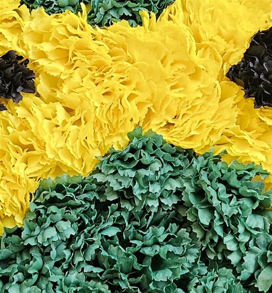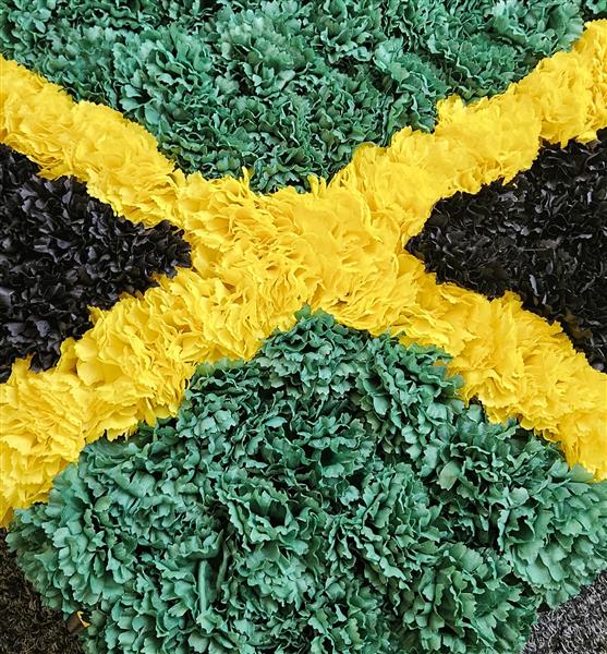 A beautifully crafted artificial heart-shaped tribute inspired by the vibrant spirit of Jamaica. Designed in the bold colours of the Jamaican flag, this arrangement represents love, strength, and cherished memories that will remain forever in our hearts.