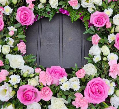 Pinks Seasonal Mix Funeral Wreath zoom 2