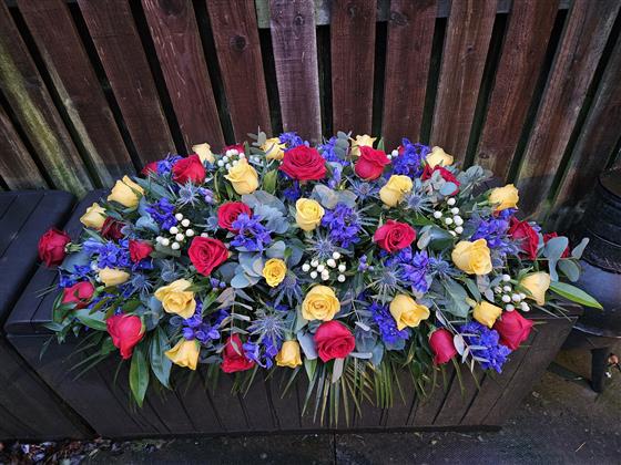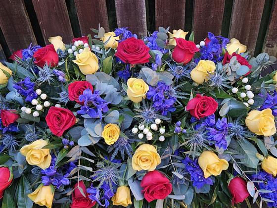 Rose & Delphinium Casket Spray