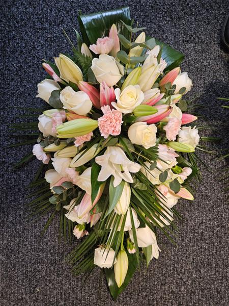 Rose & Lily Graceful Blush and White Casket Spray 1