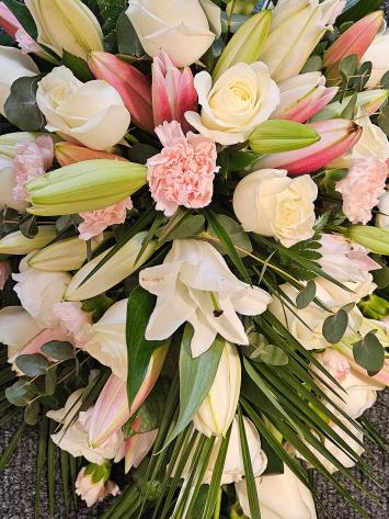 Rose & Lily Graceful Blush and White Casket Spray