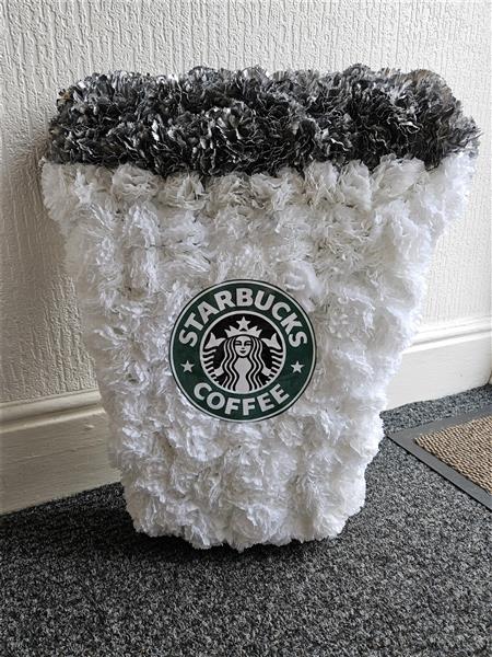 Starbucks Coffee Cup - a beautiful tribute to someone who loves their Starbucks Coffee. Can also be made in fresh flowers, please call 0114 2737689 for a price.