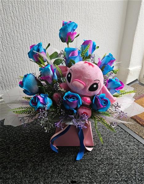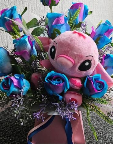 Stitch Teddy & Artificial Rose Bouquet zoom 2